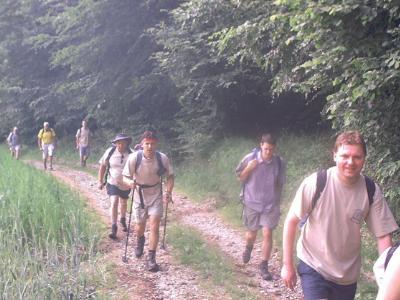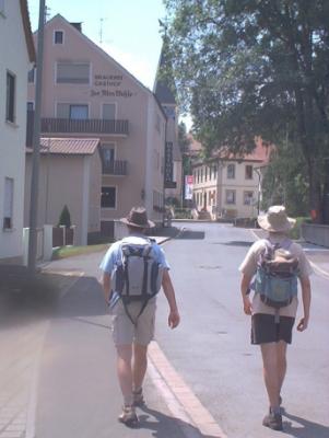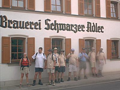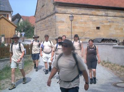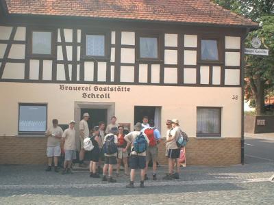 Am 14. Juni 2003 um 7.00 Uhr trafen sich die Fränkischen Bierwanderer in Rentweinsdorf. Dieses Jahr machten wir wieder eine zweitägige Bierwanderung mit Übernachtung in der Brauerei Kundmüller in Weiher. Von Rentweinsdorf aus ging es dann auf einer ca. 50 km langen Strecke in Richtung Main- und Aurachtal nach Bamberg. |